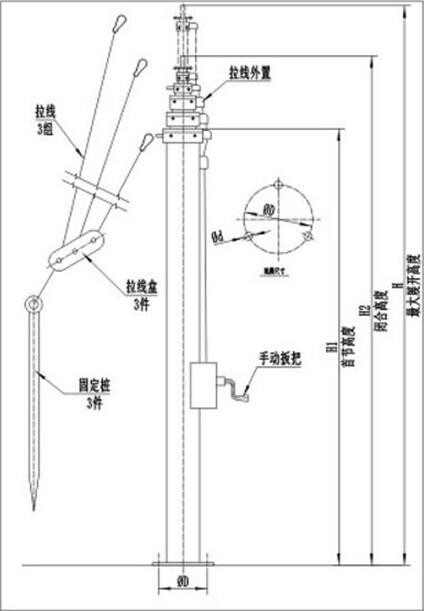 手動(dòng)驅(qū)動(dòng)天線升降桿一般采用鋼絲繩、滑輪傳動(dòng)。早期升降桿產(chǎn)品, 鋼絲、滑輪和升降機(jī)構(gòu)外置, 影響外觀,本產(chǎn)品使用內(nèi)置線設(shè)計(jì)。